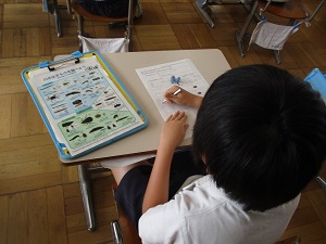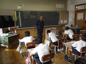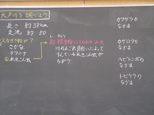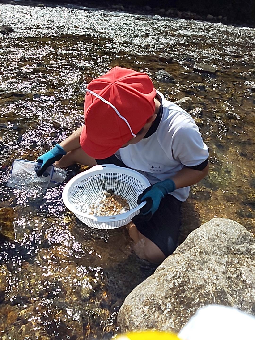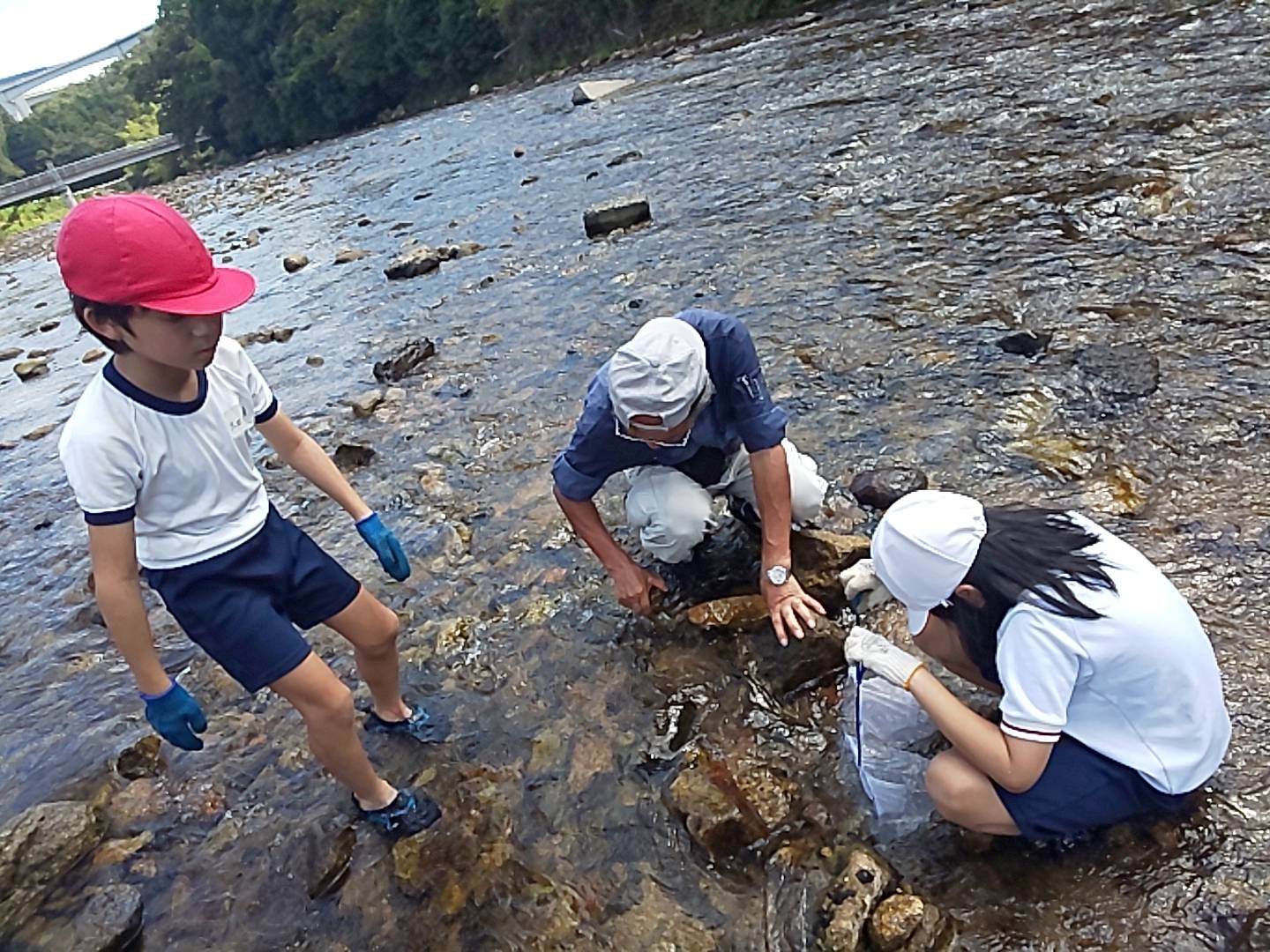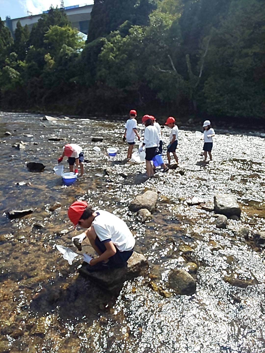 4年生児童が総合的な学習として、上田上学区内を流れる大戸川に探検に行きました。上田上支所の岩ア先生に教えていただきながら、川の中にいる水生昆虫を探して観察しました。どんなところにどんな生き物がいるか、実際の川で見つけることができ、みんな大喜びでした。