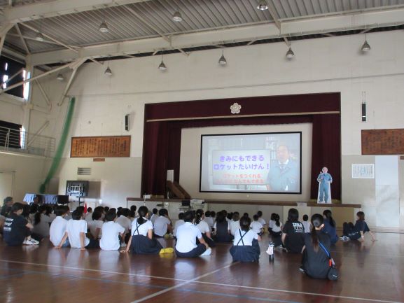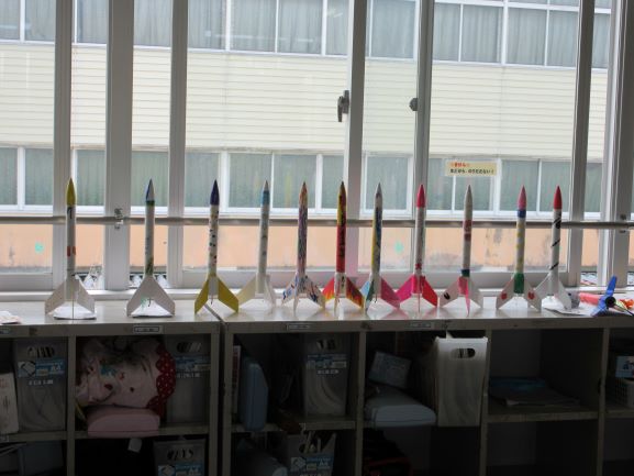 昨日、ロケット作りを教えていただき、子どもたちが完成したロケットを打ち上げてくださいました。本当のロケットと同じしくみで、火薬を装着し、「3,2,1」のカウントダウンに合わせて電子信号で発射しました。数十メートル上がった後、パラシュートが開いてゆっくり落ちてきました。子どもたちの夢に向かってのチャレンジは、これからも続きます。温かいご指導をいただきありがとうございました。素晴らしい経験ができました。