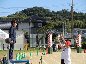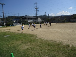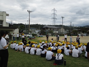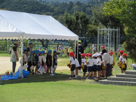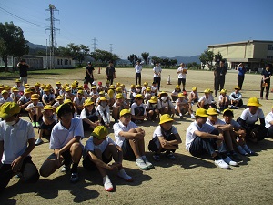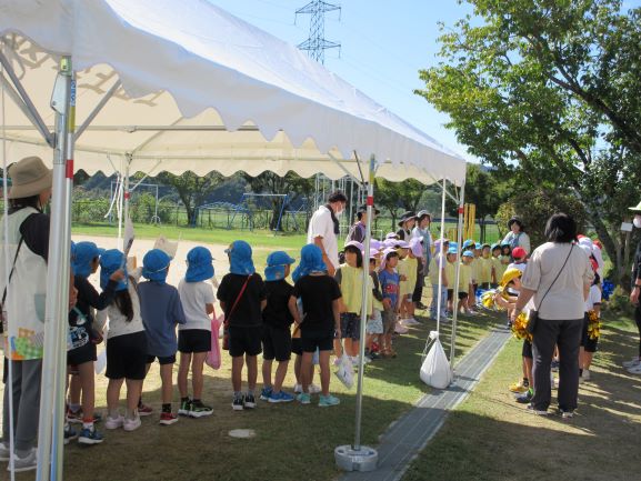 上田上幼稚園、正休保育園の園児さんたちが、本校1,2年の団体演技の練習を見に来てくださいました。最初に1,2年生の子どもたちが、それぞれの園のお友達にあいさつをすると、園児さんたちからは「がんばってください」と温かい激励の言葉がありました。1,2年生の子どもたちは一生懸命演技し、園の先生方や園児さんからいっぱいほめていただいて、自信を持つ機会になりました。両園の先生方、ありがとうございました。