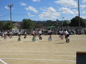 青空の下で運動会を開催しました。「最後まで全力!あきらめない上田っ子」のスローガンとして、全校の子どもたちは、いろいろな種目にチャレンジしました。かわいいダンス、かっこいい演技やゴールを駆け抜ける力強い走りなど、たくさんの頑張りが見られました。