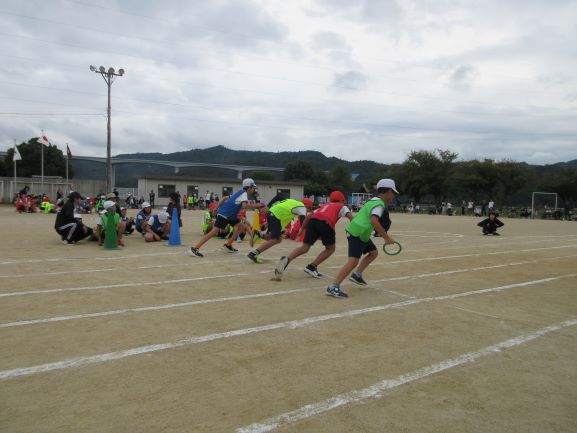 田上中学校の校長先生・生徒さんたちと6年生児童のリレー対決や全校児童によるリレーも行いました。中学生さんは常にアウトコースを走ってくださったり、全校リレーではリレーゾーンの立ち位置を工夫して、3年生以上の子どもたちが低学年の子どもたちの分を長く走ったりするなど、大きい立場の人がハンディを負うという工夫をしていました。お忙しい中、ご協力くださった中学校の皆様ありがとうございました。また、応援くださった保護者・地域の皆様もありがとうございました。会場準備等地域のお力も多々お借りしました。多くの方のお支えですばらしい運動会が終えられましたことに心より御礼申し上げます。ありがとうございました。