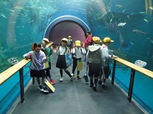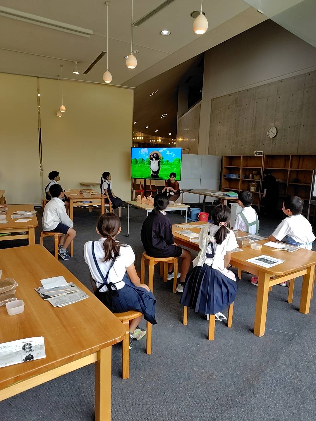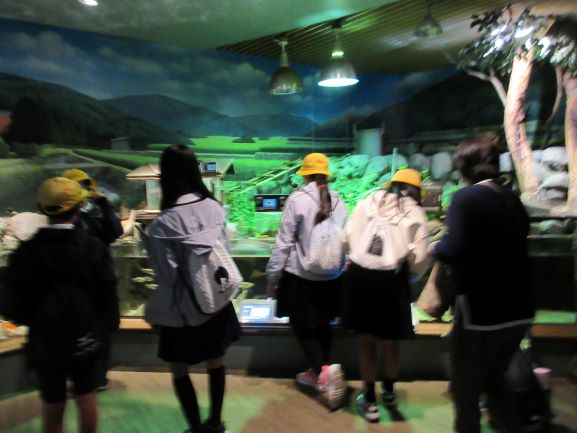 琵琶湖博物館では、琵琶湖の歴史や自然、人々の暮らしについて学びました。いろいろな展示物を興味に持って、見学できました。珍しい生き物(ビワコオオナマズやオオサンショウウオ)を見たり、昔の建物で、昔のくらしについて考えたりしました。