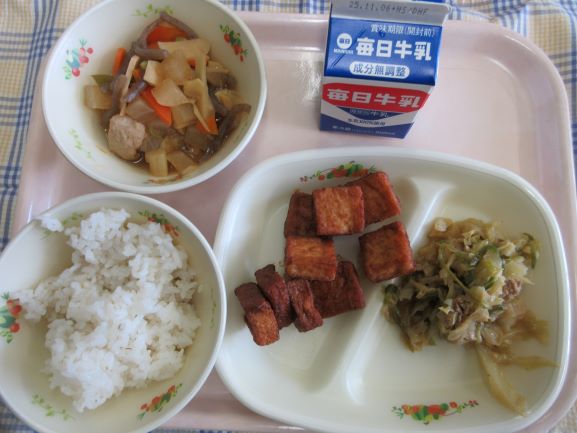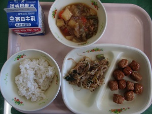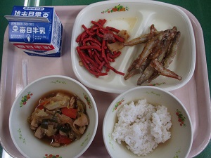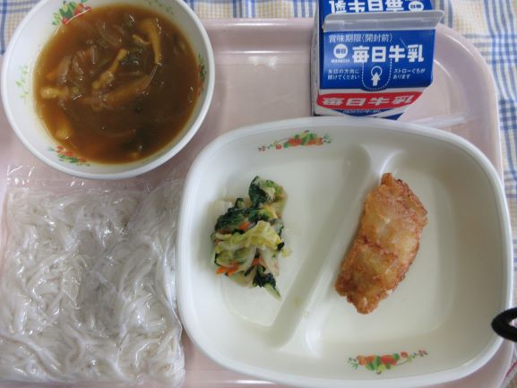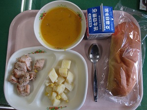 子どもたちの好きなカレーうどんでした。和風の味付けで美味しくいただきました。