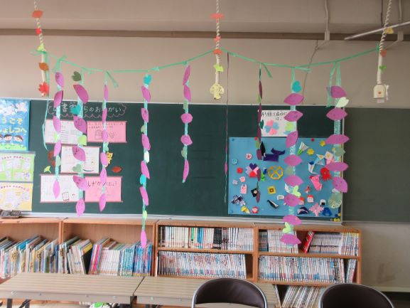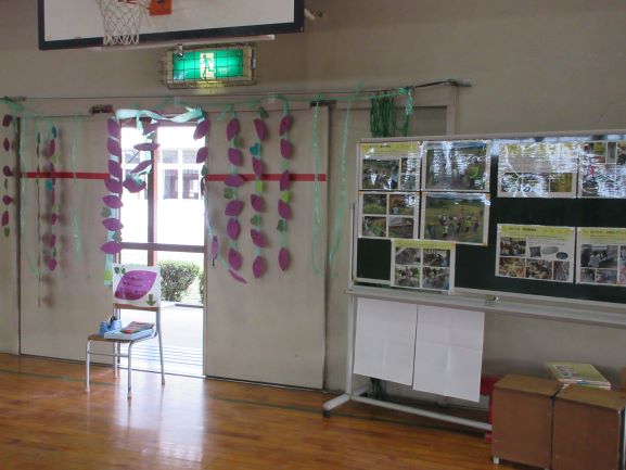 菜の花会 図書ボランティアの方々の呼びかけで、全校でさつまいもの形の紙に思い思いの顔を描きました。それを今日、ボランティアの方たちがかわいい飾りにして、図書館に飾ってくださいました。学校の芋掘りはまだですが、一足早く秋の様子になりました!自分の書いた顔を探しに図書館に来てくれる子どもたちが増えるといいなと思っています。ボランティアの方々ありがとうございました。