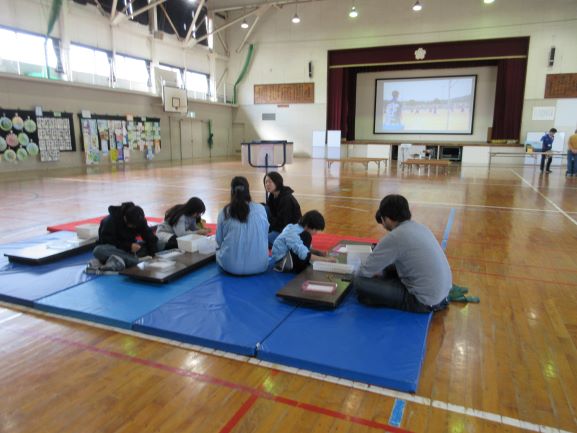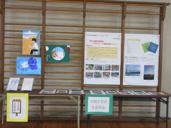 上田上学区の文化祭1日目でした。今日は龍谷大学農学部の実習棟でコケリウムを作る講座があったり、コミュニティセンター・幼稚園・小学校で作品展示がありました。小学校では田上中学校の方の作品展示も行いました。上田上小学校には100名を越える観覧者がお越しくださいました。子どもたちの作品や菜の花会の活動の様子などじっくり観てくださいました。また、上田上学区民会議やまちづくり協議会の方々がポップコーンやアイスクリームを振る舞ってくださったり、ビーズ作品作りコーナーを設けてくださったりしたので、体育館や芝生広場で交流の輪が広がりました。関係の皆様、朝から片付けまで温かい活動をしていただき、ありがとうございました。