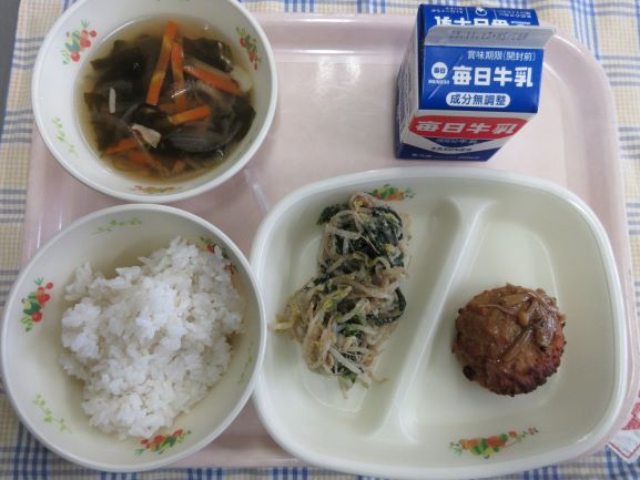麦ごはん・牛乳チキンハンバーグのきのこあん(新メニュー)