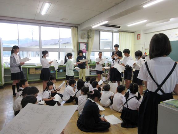 今朝から運動会の応援合戦に向け、色別の応援練習が始まりました。5,6年生の応援リーダーさんが1−4年生の子どもたちに、自分たちが考えた応援内容を伝え、みんなで練習しました。声を出すところ、手拍子するところ、歌を歌うところなど、流れを覚えて声を出す練習をしていきます。