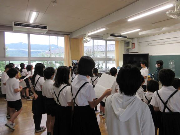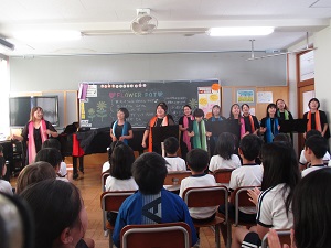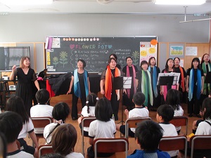 昼休みに地元のフラワーポットさんが、来てくださりゴスペルコンサートをしてくださいました。ピアノに合わせて、4曲を歌ってくださいました。子どもたちは、自然に手拍子をして「オーハッピーデ−」と口ずさんでいました。力強く素敵なハーモニーをありがとうございました。