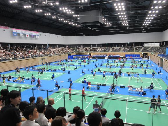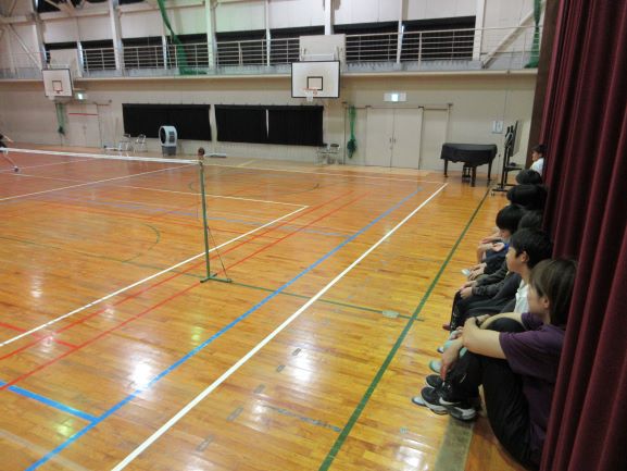26日から本日午前中まで、本校体育館が国スポ バドミントン選手の方の練習場になっていました。今日が最終日だったので、各学年が交代で練習風景を見学させていただきました。選手のお姿は撮影禁止でしたので、様子だけの紹介になります。シャトルを打ち合っておられるところや、ミスがほとんどない長いラリーを続けておられるところを間近で見せていただき、子どもたちは興味津々の様子でした。快く見学させてくださった国スポ関係者のみなさま、ありがとうございました。
