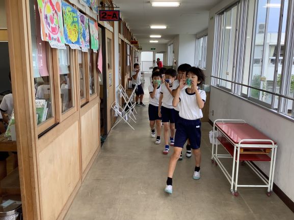 2校時目に2回目の全校リレー練習を行いました。水曜日に1回目の練習をしたので、今日はよりスムーズに並んだり、自分の順番のときに走ったりすることができました。5,6年の子どもたちは色別のビブスの配布や回収、チームの子どもたちの整列の補助など、きびきび動いて力を発揮していました。頼もしい高学年の姿はきっと下の学年の子たちの手本としてうつっていると思います。本番、みんなが自分の力を出し切り駆け抜けてくれることでしょう。