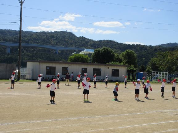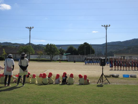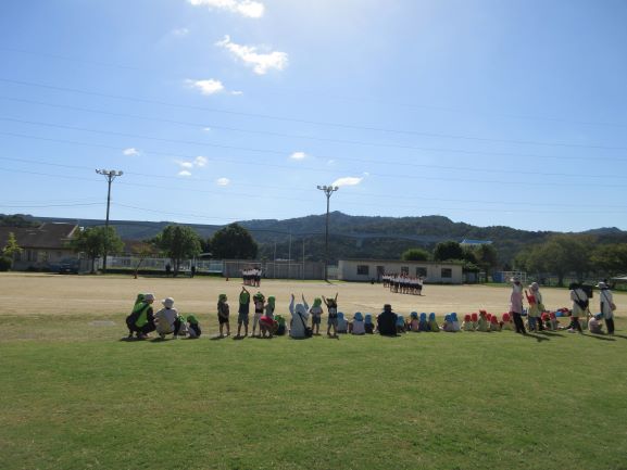 正休保育園や上田上幼稚園のお友だちが運動会の様子を見に来てくださいました。演技に拍手や歓声を送ってくださったり、演技の様子をまねして一緒に体を動かしてくださったり。かわいい声援を受けて、どの子もいつも以上に気持ちが入って頑張る様子が見られました。また、園の先生方は卒園した子どもたちの姿をご覧になり、「成長しているな」「みんな一緒に取り組んでいる様子に涙が出ました」など嬉しい感想を伝えてくださいました。暑い中、温かい拍手をおくってくださりありがとうございました。本番へ向けて一層みんなで高められました。