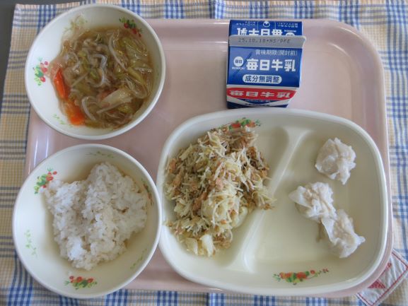麦ごはん・牛乳蒸しチキンしゅうまい