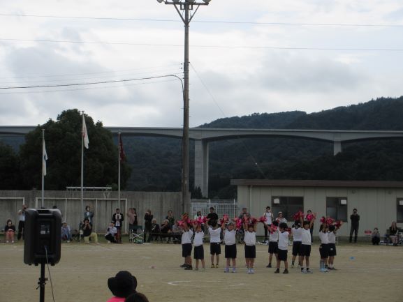 低学年部の演技の様子です。キラキラのポンポンを使って速いテンポの曲にばっちり合わせて踊りました。途中ウェーブを上手にしたり、小グループごとの創作ダンスの部分もあり、見応えたっぷりでした。