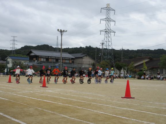 中学年の演技の様子です。前半はずっと練習を続けてきた一輪車の発表。あきらめないで粘り強く取り組み、学級全員で横一列になって走るという大技もできるようになりました。3年生、4年生とも成功し、大きな拍手をいただきました。後半はのりのりの楽曲をつかって、楽しいダンスを2曲発表しました。コールレスポンスもいただけて会場に一体感が生まれました。