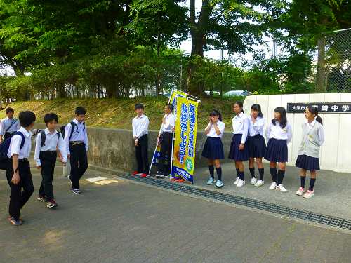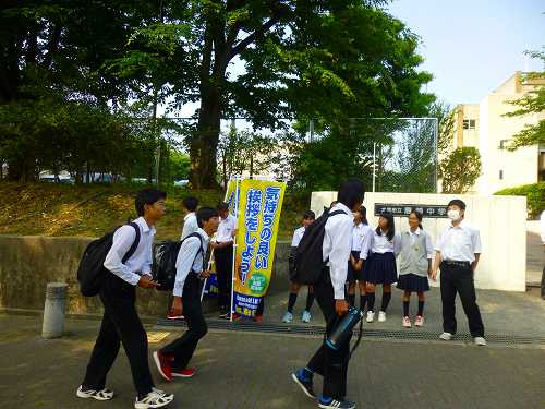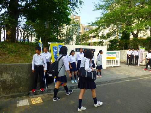 月曜日の朝、校門前で生徒会が挨拶運動を実施しています。