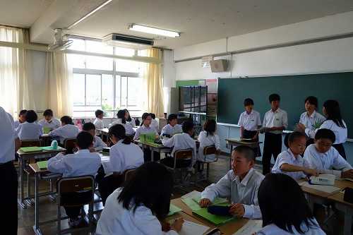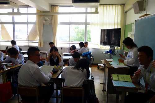 各学級で、6月実施予定の生徒総会に向け、議案書の内容を確認し、討議しました。1年生のクラスには生徒会本部から役員を派遣し、議案書討議のお手伝いをしました。