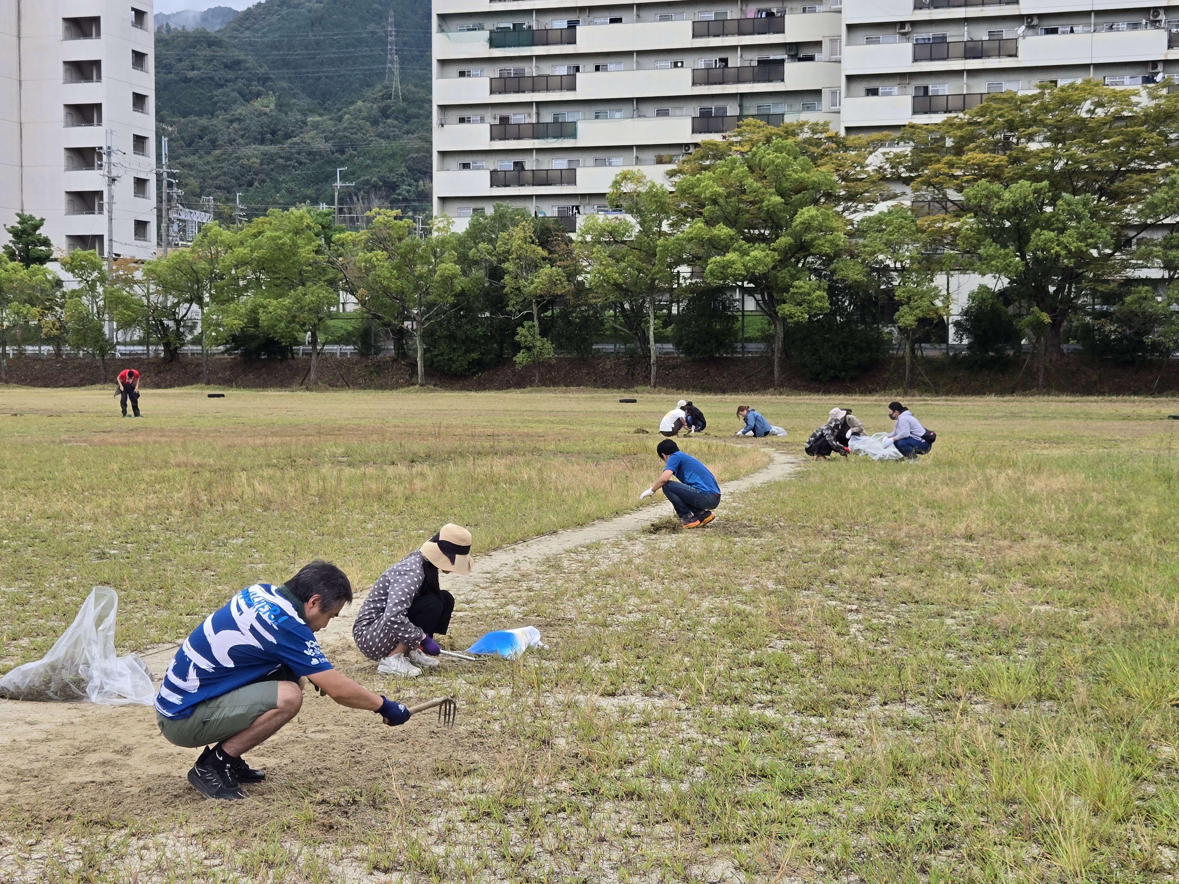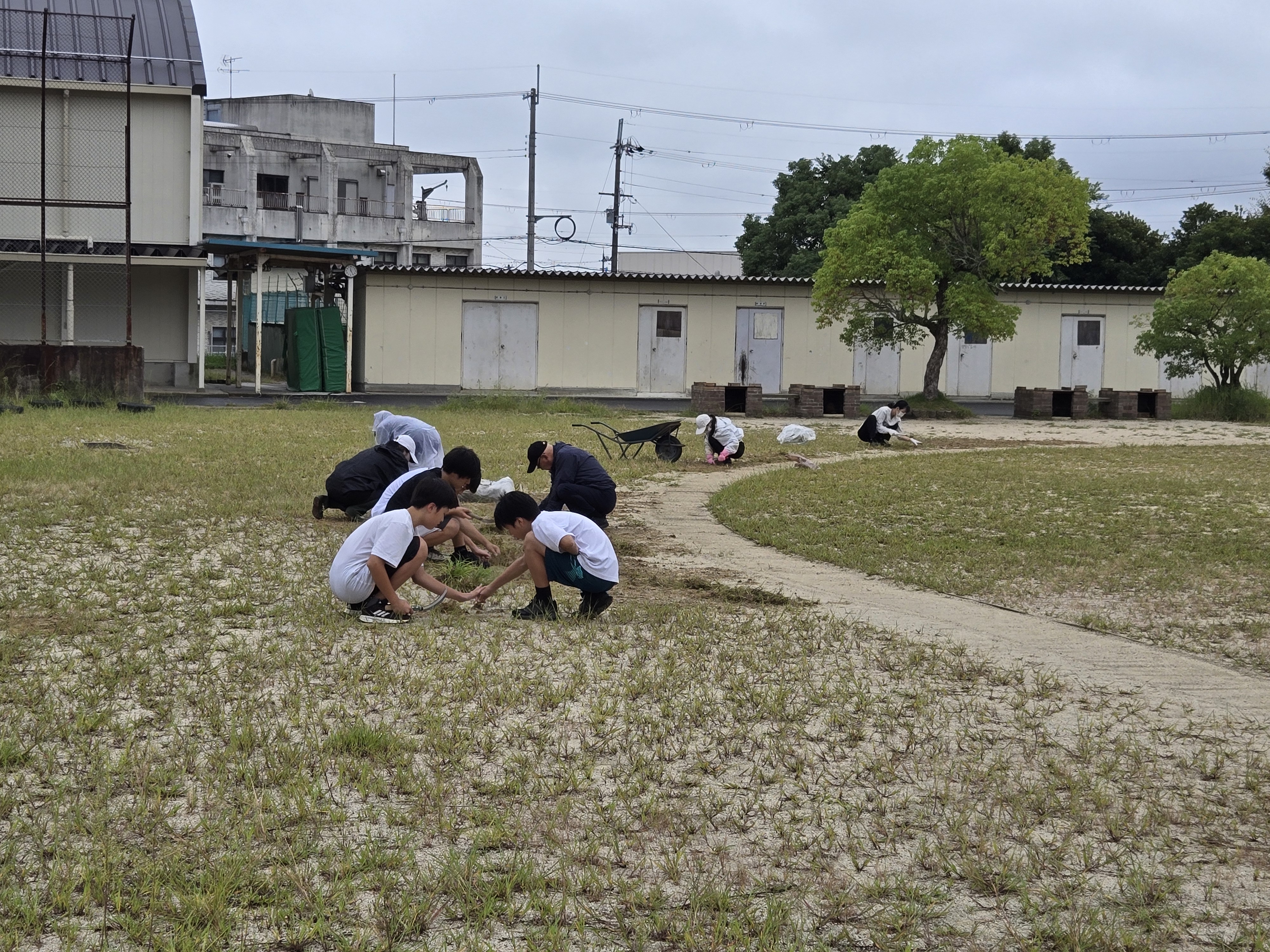 いつ雨が降り出してもおかしくない曇天の中ではありましたが、無事に除草作業を終えることができました。雨天延期のうえでの実施となりましたが、お忙しい中ご参加いただいた保護者の皆さま、誠にありがとうございました。