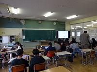 6年生の国語では「海の命」を学習しています。立松和平さんの小説で、漁師の父の死を乗り越えようとする息子と母、漁師の心得を学ぶじいさんのそれぞれの思いから生き方を考える物語です。最後は父の仇である巨大なクエとの戦いを通して命や共生について学びます。グループや個人でワークシートや思考ツールを使いながら、自分たちでタブレットを使って学習を進めています。今日は、市教委からの見学もありました。