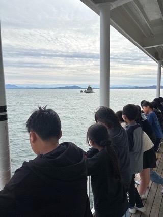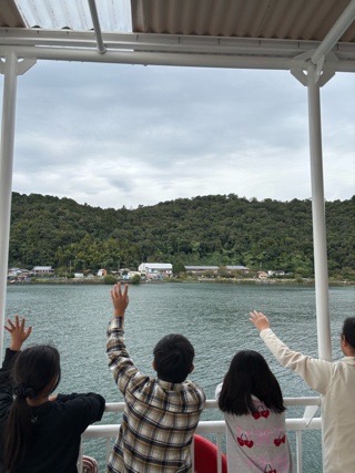 琵琶湖では、強風で波が高く航行が心配されましたが、無事に全行程を終えて琵琶湖大橋港に寄港し、バスで木戸まで戻ることができました。今回の宿泊行事を通して、級友だけでなく他校の仲間と仲良くすることができました。昨夜は揺れで熟睡できなかったようですが、今日はゆっくりと自宅で休んで明日に備えてください。朝晩の冷え込みが心配されますので、暖かくして眠ってくださいね。保護者の皆さん、ご準備などご協力ありがとうございました。