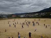 昼休みに、全校で鬼ごっこをしました。これは、体育委員会が中心となって取り組んでいる「木戸リンピック」です。今回は、体育委員と元気な先生を合わせた15人ぐらいが鬼になり、グラウンド内の限られた範囲での鬼ごっこをしました。生きのびた人数が多いチームが勝ちとなります。少しの差で赤チームの優勝となりました。これまでの玉入れや運動会の結果から、総合優勝が決まります。鬼の先生は、少し疲れた様子でした。