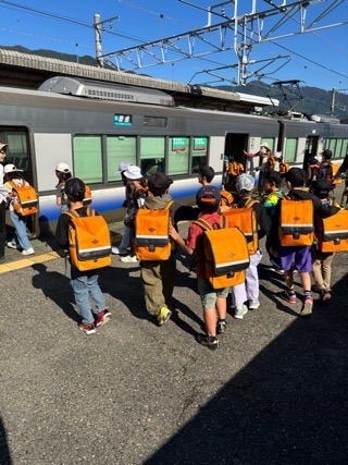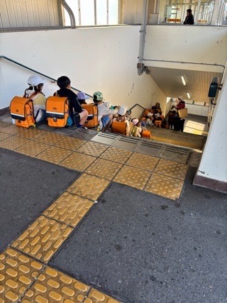 爽やかな秋晴れの中、2年生は和邇図書館へ校外学習に出かけます。電車を使うため、事前に、改札機や公共の場での立ち振る舞いについて学びました。
