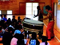 昼休みに体育館で、「てんびん太鼓塾」の方に来校いただき、和太鼓の演奏を披露していただきました。後半は、和太鼓体験で実際にたたく事もできました。大きな太鼓をたたき、日本の伝統楽器に親しむことができ、有意義な時間を過ごすことができまました。2025/09/09