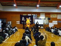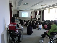 木戸学区自主防災会様、木戸学区社会福祉協議会様の主催による防災教室が3年生を対象に行われました。京都府立大学准教授の三好岩生氏の講演に始まり、クイズや起震車体験、煙体験などを行いました。