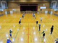 5年生の体育では、地域の方とスポ大の学生さんからハンドボールを教えていただいています。6回シリーズの今日は2回目で、ジャンプシュートがリズム良くできるように練習しています。秘訣は、心の中で1,2,3のリズムを数えることだそうです。寒い体育館で、指先まで冷え込みますが頑張って、練習をしています。