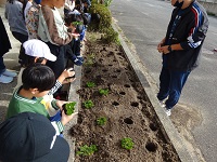 木戸学区青少年育会議さんからいただいたシバザクラの苗を、1年生が植えてくれました。花いっぱい運動の一環で各校園に配られたものです。今日は天候にも恵まれて時期的には少し遅いかもしれませんが無事に100株を玄関先と校門前の花壇に植えました。来春にサクラのようなピンクの花が満開になるのが楽しみです。ありがとうございました。