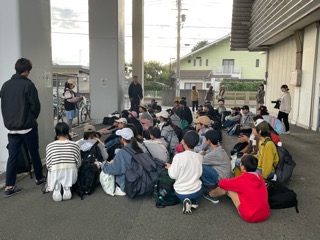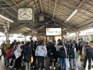 他の小学校や幼稚園も多く、とても混んでいます。午後はグループで回りますが、時間がかかる可能性があるため、予定より早く弁当を食べ始めました。