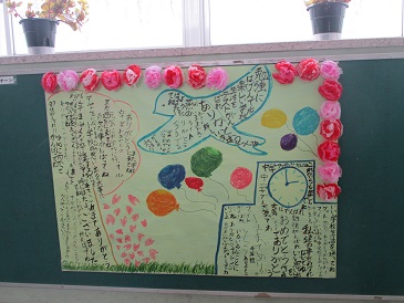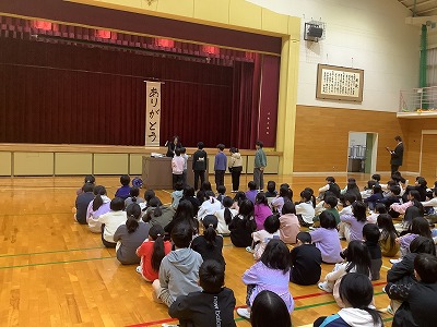 終業式では、これまでお世話になった家族や地域の方々へ、「ありがとう」の気持ちを言葉で伝えられるとよいですね、というお話をしました。