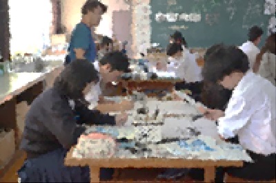 今日の3年生美術の授業では、水墨画で「龍を描く」でした。濃淡をつけたり、にじみ、ぼかし、かすれなどの筆づかいを学んでいました。先生の実演や見本をじっくり見ながら集中して取り組むことができました。