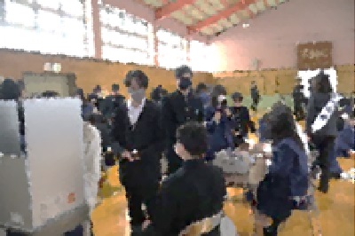 今日は3年生が「滋賀県明るい選挙出前講座」を受けました。大津税務署の方から「税の仕組や使い方について」お話があり、その後に滋賀県選挙管理委員会の方から「選挙の意義」等についての説明がありました。そして、先生が歴史上の人物の候補者役になり、演説を行い、投票、開票作業の役割を協力して行いました。卒業後18歳になったら自分でよく考えて投票しましょう。