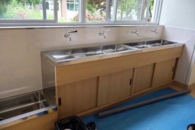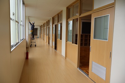 夏休みは閉校期間中も、多くの工事関係の方々が来て、着々と工事を進めてくださっています。ありがとうございます。普通教室等の外壁も、教室・廊下などの改修も進んでいます。
