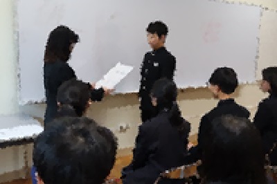 11日の放課後に、新生徒会執行委員の任命式を行いました。一人ひとり任命書を受け取りました。これから1年間、全校生徒が協力し、支え合いながら学校をより良くしていけるように、リーダーシップを発揮してください。