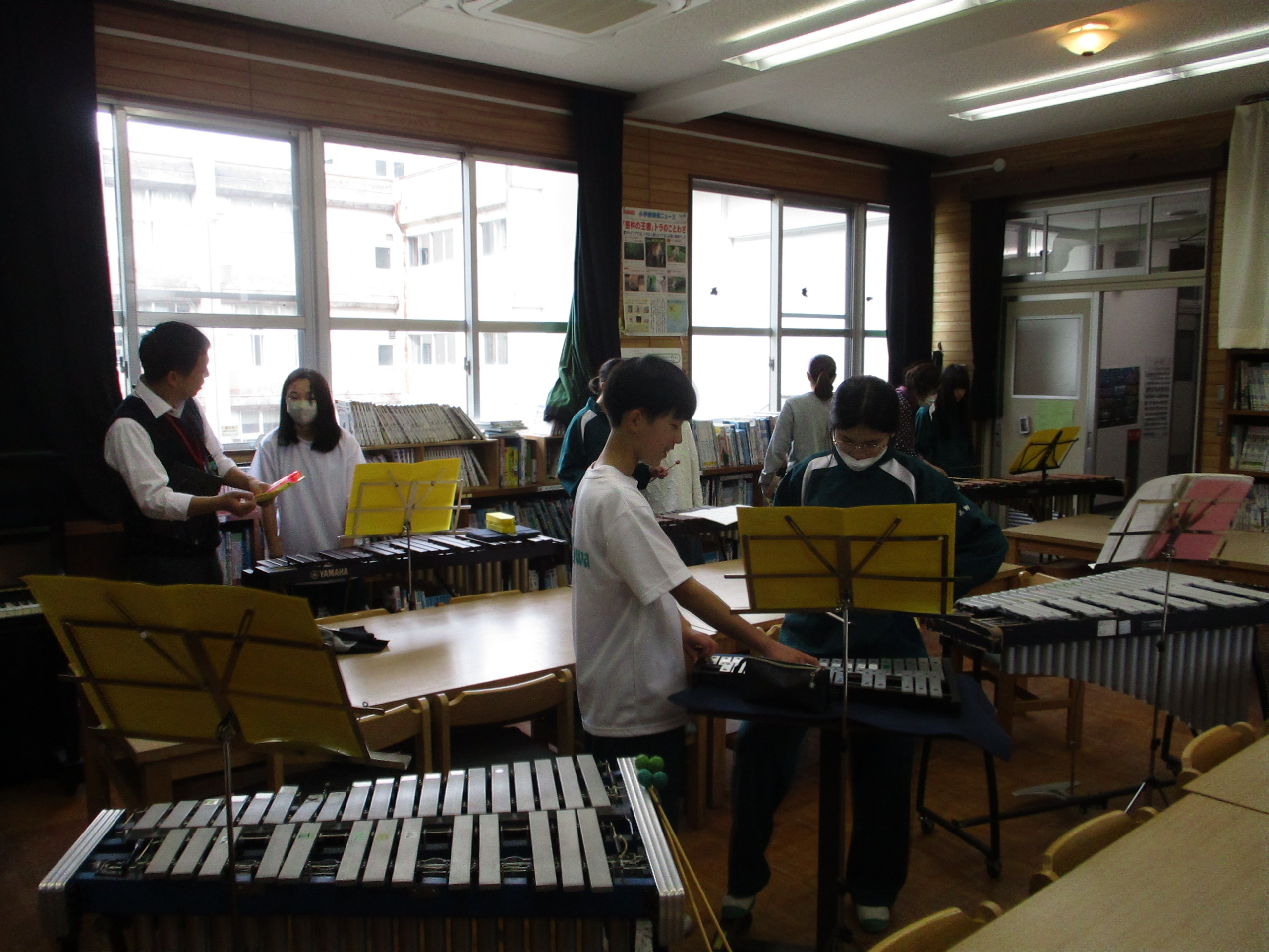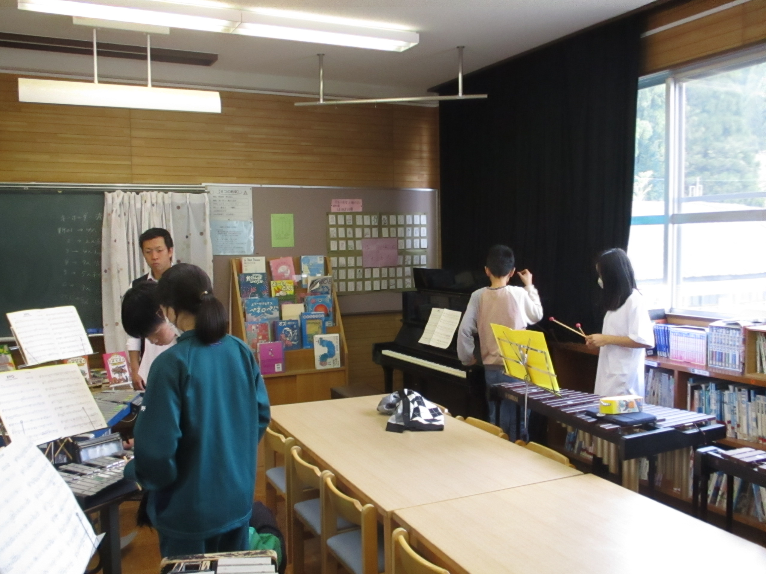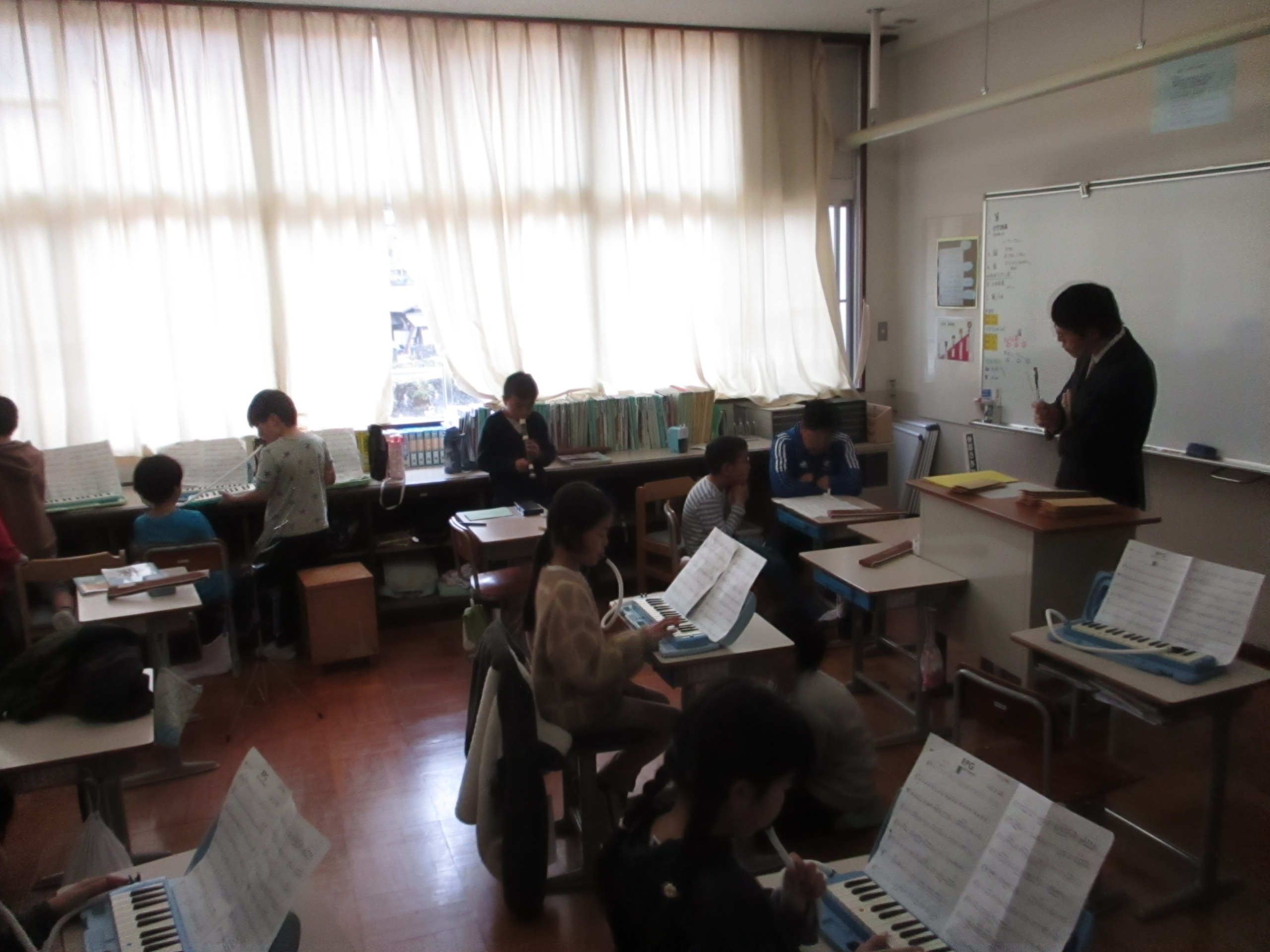 2026/04/24(金)【小・中学校】合同音楽 小学校と中学校で合同音楽を行いました。 中学生が、小学生に教える姿も見られました。 それぞれのパートの練習を積み重ね、本番に向けて よいハーモニーができあがることを期待しています。