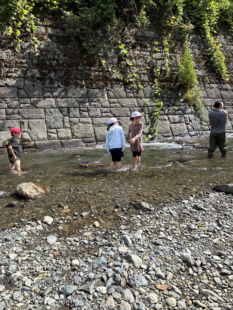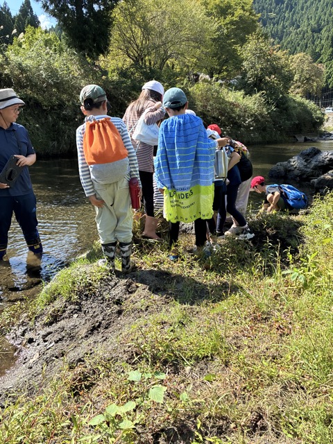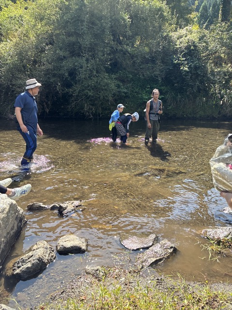 2025/10/08(水)3・4年生 川探検 延期となっていました川探検ですが、好天の中で実施できました。木戸口の川の様子を初夏の時と比較したり、学校前の川を五感で味わったりしました。大きな石と小さな石を採取しました。
