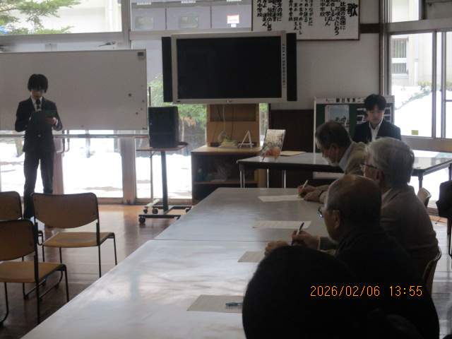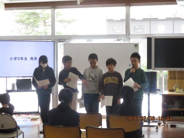 2026/02/06(金)つなげる会(後期)を開催しました 小学校中学校葛川小中日記 葛川・久多協働推進つなげる会の後期の会を開催しました。 理事の方々に、各グレード(学年)の後半の取り組みと、次年度の計画の報告をしました。質疑応答や、アドバイスをいただき、最後に次年度にかかる経費(サイトの維持更新費用)の見積書をわたし、支援をお願いしました。みんな立派に発表できていました。
