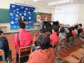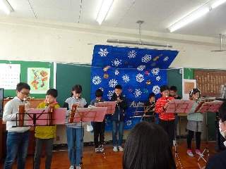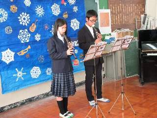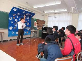 中学校で音楽の発表会をしました。生徒だけでなく、教員も練習をして発表しました。小学5年生が鑑賞して発表もしてくれました。