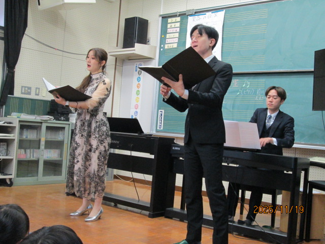 びわこホールからゲストティーチャーにお越しいただき、すてきな歌声を聴かせていただきました。さすがプロの歌声でした!!