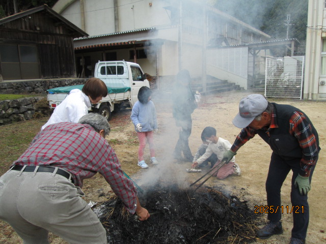 寿会さんにご協力いただき、焼きました。ほくほくのお芋でした!!