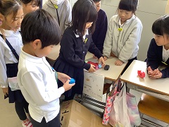1年生とおもちゃまつりをしました。時間をかけて、1年生が楽しんでくれるように準備を頑張っていました。「こっちに並んでね。」「こうしたら、高く飛ぶよ!」