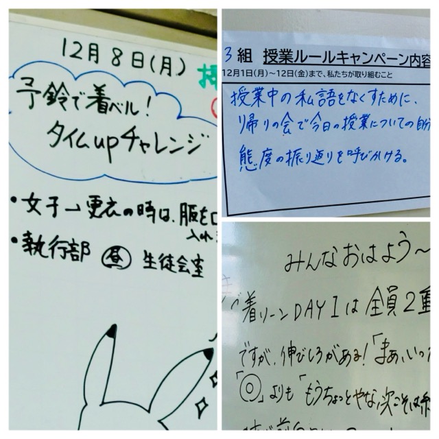 本日から12月12日(金)までの4日間、生徒会が企画した「ピンクシャツDays」が始まりました。「ピンクシャツDays」のねらいは、次の2つです。 ・学校全体で「いじめゼロ」の意識を高めながら日常生活を送る。 ・生徒が主体となって、いじめ防止のアクションが起こせるきっかけとする。 朝学習の時間に生徒会執行部が各教室へ行き、「ピンクシャツDays」の説明と、ピンクシャツカードの配布を行いました。 12月9日(火)10日(水)は、8種類のイラストのピンクシャツカードを胸に着用して、いじめ防止を意識しながら生活します。 12月11日(木)12日(金)は、いじめ防止の内容が書かれたビンゴカードを意識しながら生活します。 12日(金)の帰りの会には、執行部の生徒が各教室を再び訪れて、4日間の振り返りをする予定です。 ちょうど12月4日から12月10日までの1週間は、法務省人権擁護局・全国人権擁護委員連合会が定める「人権週間」です。 この機会に、いじめ防止や人権を大切にする雰囲気を盛り上げましょう。 |