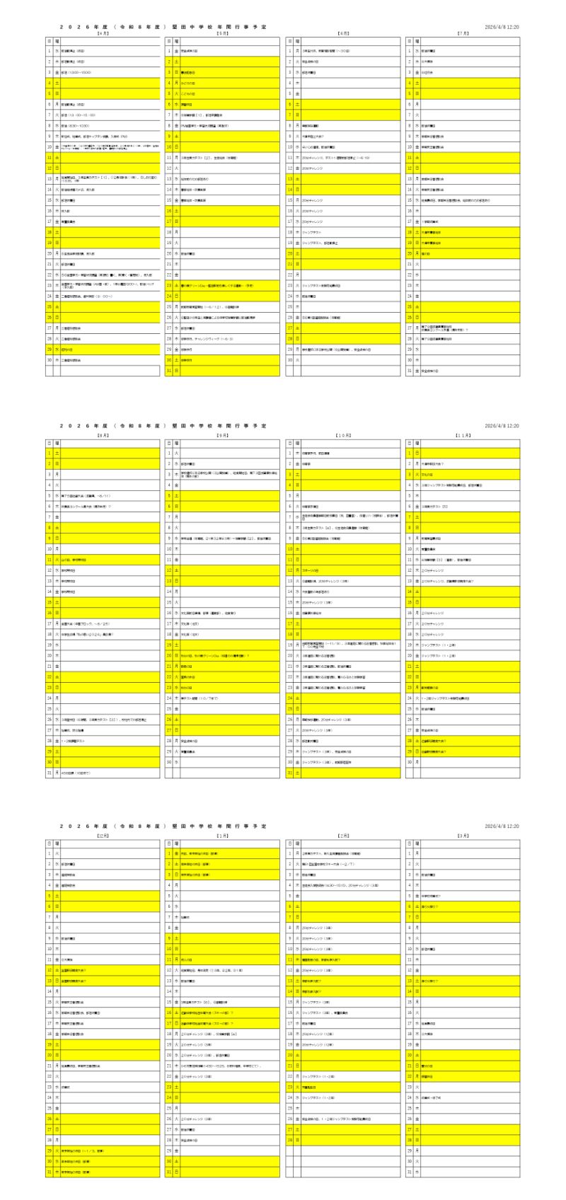令和8年度の年間行事予定を、ホームページ内「学校生活」のページに掲載しました。
