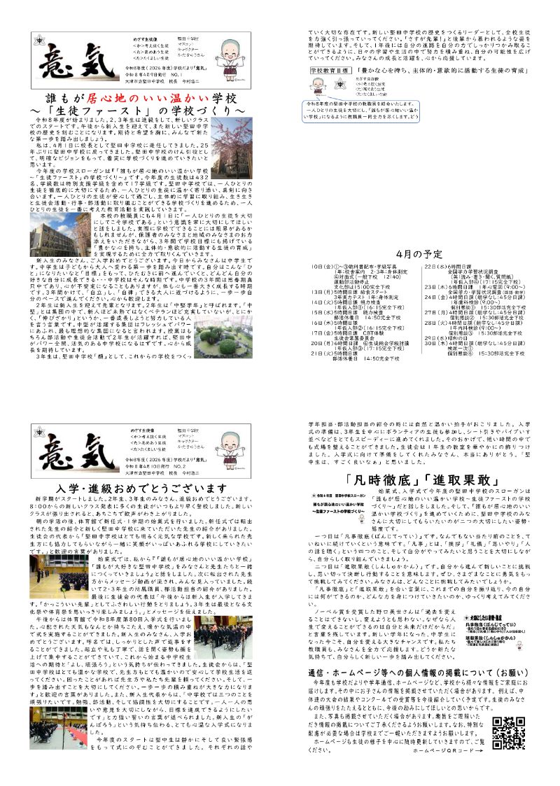 また、今年度は、生徒の様子や学校の動きをできるだけお伝えできるよう、ホームページを毎日更新し、学校だよりもタイムリーに発行していきます。心温まる内容を心がけてまいりますので、ぜひお時間のあるときにご覧ください。