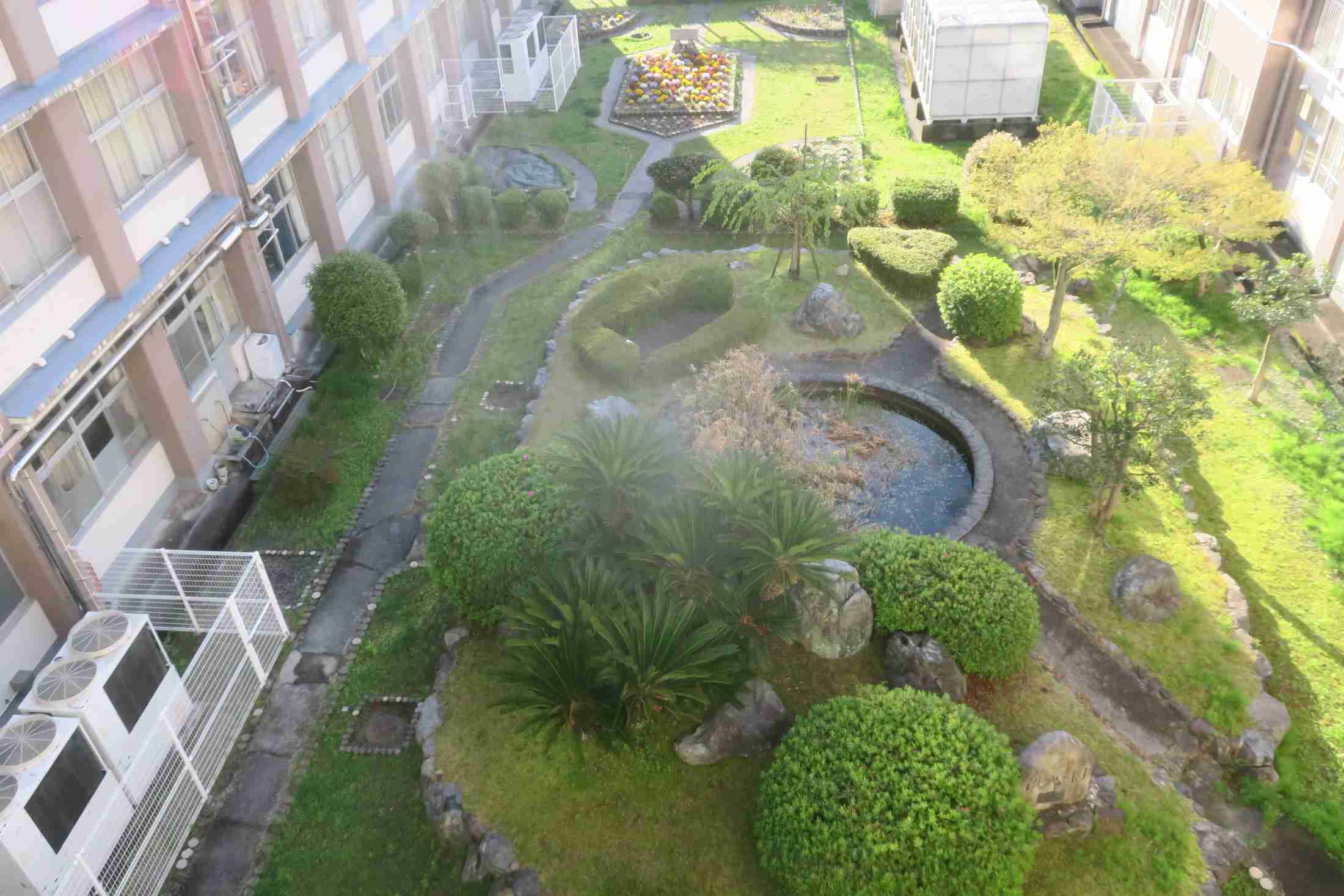 1年生の美術では、デッサンに使う花や草を中庭で探していました。音楽では校歌の練習に取り組んでおり、次に歌う機会となる1学期の終業式に向けて、大きな声で歌えるよう練習を重ねています。