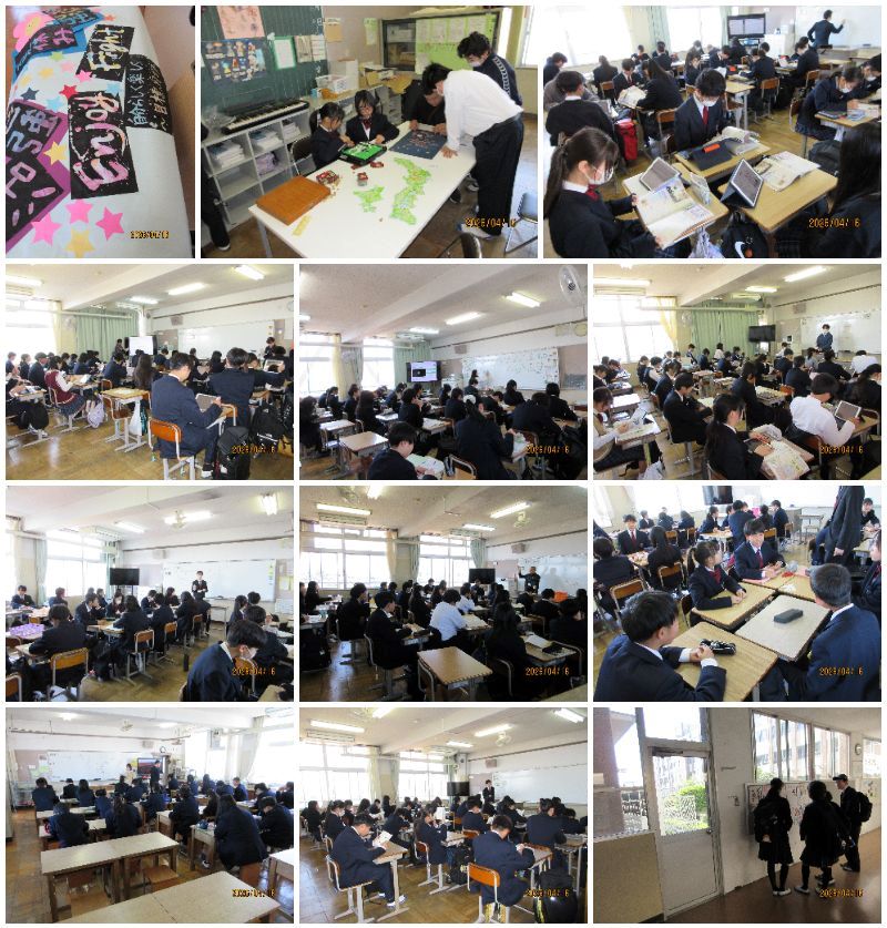 1年生の音楽では、合唱の練習が行われていました。ピアノを囲み、1年生らしい元気な歌声が響いていました。社会は国の名前の由来、数学は正の数・負の数・整数について学習をしていました。