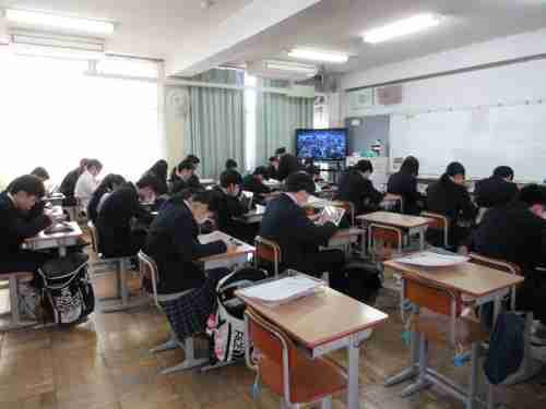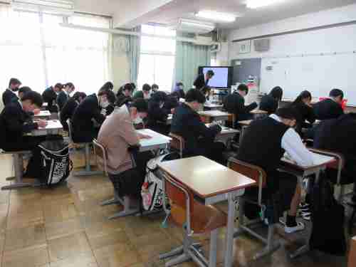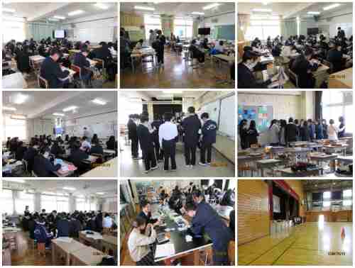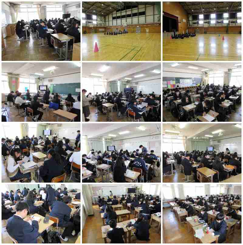 昨日に引き続き、3年生は全国学力・学習状況調査に取り組んでいます。今日は国語と数学の調査です。3年生は問題に真剣な表情で向き合い、一つひとつの問題に丁寧に回答していました。