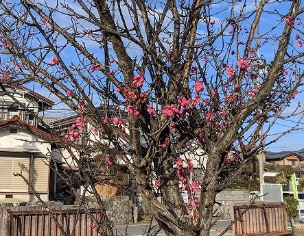 校門の近くの梅の木に、かわいい赤い花が咲き始めました。まだ冷たい風の吹く日もありますが、「三寒四温」という言葉の通り、寒さの合間に感じるやわらかな陽ざしに、季節のうつろいを感じます。登校してくる子どもたちも、梅の花に気が付くと、「もう春やなあ」とうれしそうに話していました。自然の小さな変化に気づき、心を弾ませる子どもたちの姿に、春はもうすぐそこまで来ているように感じる今日この頃です。