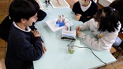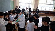 校区内の真野幼稚園の皆さんが、本校へ体験に来てくださいました。はじめに、小学校の1日の流れについて話を聞き、「授業はどんなことをするのかな」「休み時間はどんな遊びをするのかな」と、目を輝かせながら耳を傾ける姿が見られました。その後は、教室で実際の授業を体験しました。少し緊張しながらも、手を挙げて発表したり、プリントに書き込んだりする姿は、とても頼もしく感じられました。そして最後は、楽しみにしていた給食体験です。小学校の給食を味わいながら、4月から始まる新しい生活への期待が、ますますふくらんだ様子でした。
